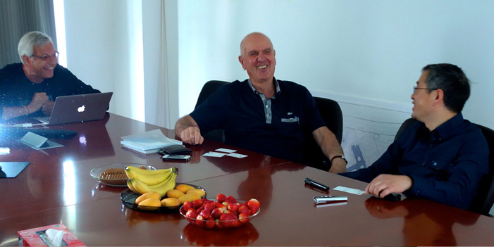 5月15日,恰逢犹太节日五旬节(Shavuot)。下午,以色列驻华大使马腾先生(Mr. MatanVilnei)忙中偷闲,利用节假日来到了公司访问,MEB副董事长兼CEO马振荣先生、董事班尼•夏德弥博士(Dr. Benny Shadmy)先生以及总建筑师孙宗伟先生接待了马腾先生。